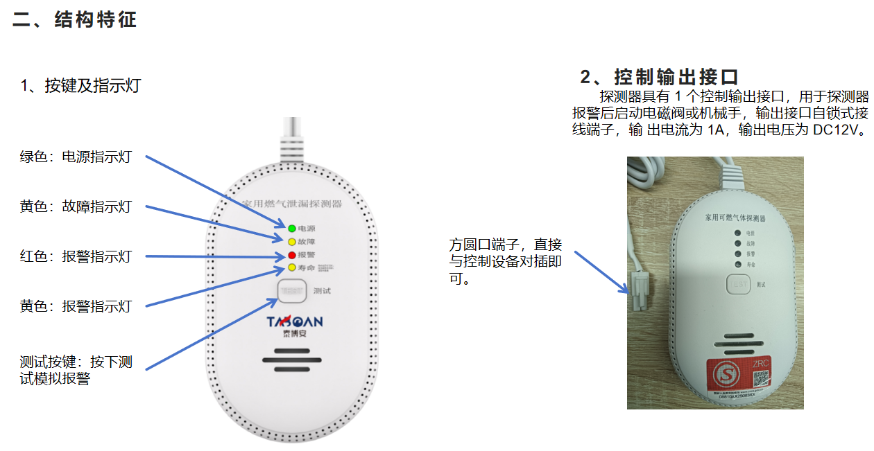 | 報警音響 | 大于 70dB 并小于 115dB(正前方 1 米處) |